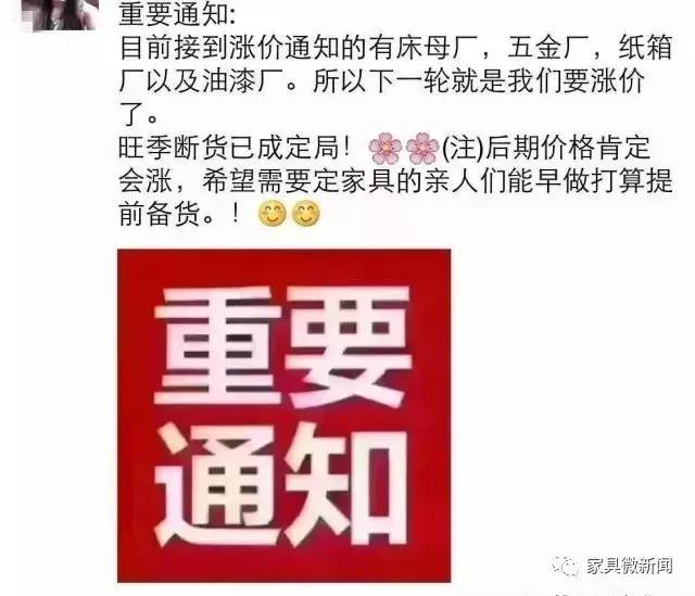 最近各位家具經(jīng)銷商老板們都被朋友圈的漲價消息刷爆了。是的,又漲價了,哎!漲價潮開始,未來的日子請不要問價,直接問有沒貨!很多企業(yè)都已經(jīng)二次漲價了!本次漲價潮可以說是繼年前那波暴漲行情之后的第二輪漲價潮,漲價不可怕,可怕的是漲價后依然斷貨,更無法預(yù)測的是連環(huán)漲價潮背后可怕的是倒閉!